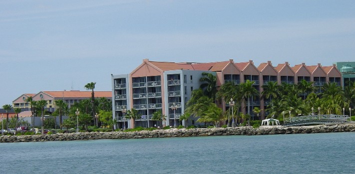During our first week in Aruba, we discovered the Metacorp the owners of the resort had taken bids on running the resort - Sonesta did not win. Marriott (or rather Renaissance) did. The signs were taken down from the hotel while we were there. Alex has a funny story about the one coming down on this end. His room is the second from the right at the very top on the end - just below the sign. Needless to say he never saw any reason to keep his drapes closed until the guys on the cherry picker waved!