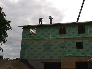 Dad, Joe & Larry putting the wood on the ends of the trussees.