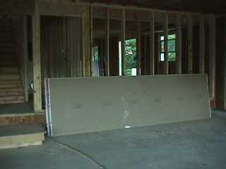 The drywall is all delivered, and spread throughout the house.
