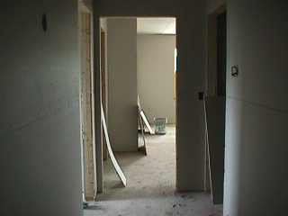 to the subgarage (far left) the microwave cupboard (center) and the door