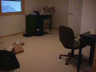 This is the back bedroom, full of stuff. Rick was still carpeting