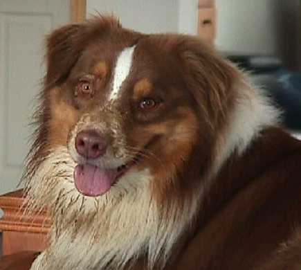 You'd never guess he just had a bath yesterday. It rained all day today, and he had a blast jumping in puddles and basically making a mess of himself. Today (May 1st) is his second birthday - so I guess we can live with him dirty for awhile.